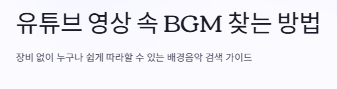 유튜브 영상을 시청하다 보면 영상의 분위기를 살려주는 매력적인 배경음악(BGM)을 만날 때가 있습니다. 하지만 영상 설명란에 정보가 없어 답답했던 경험이 있으실 겁니다. 오늘은 별도의 장비 없이도 누구나 쉽게 실행할 수 있는 유튜브 영상속 배경음악 브금 bgm 찾기 방법을 단계별로 소개해 드립니다.