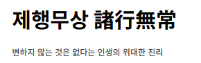 - 뜻: 세상의 모든 존재와 현상은 끊임없이 변하며 영원한 것은 없다.