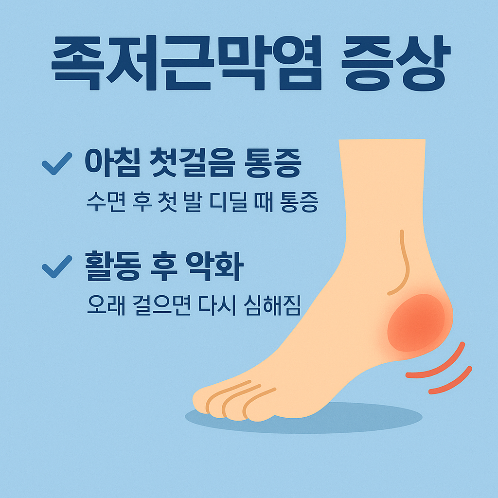 **“아침 첫걸음 통증”과 “활동 후 악화”**는 족저근막염을 가장 잘 드러내는 신호입니다.