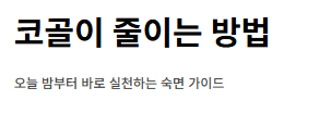 코가 막히면 입으로 숨을 쉬게 되어 코골이가 심해집니다.